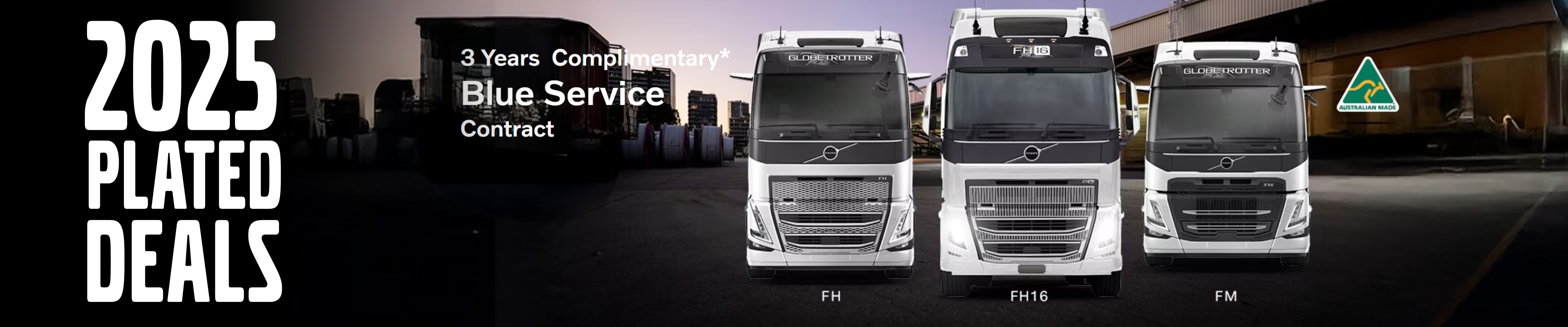 Experience premium performance, comfort, and reliability with our 2025 plated deal on Volvo FH16, FH, and FM models. Each truck comes with a complimentary Volvo Blue Service Contract*, providing 3 years of servicing to help support ongoing, reliable operation.